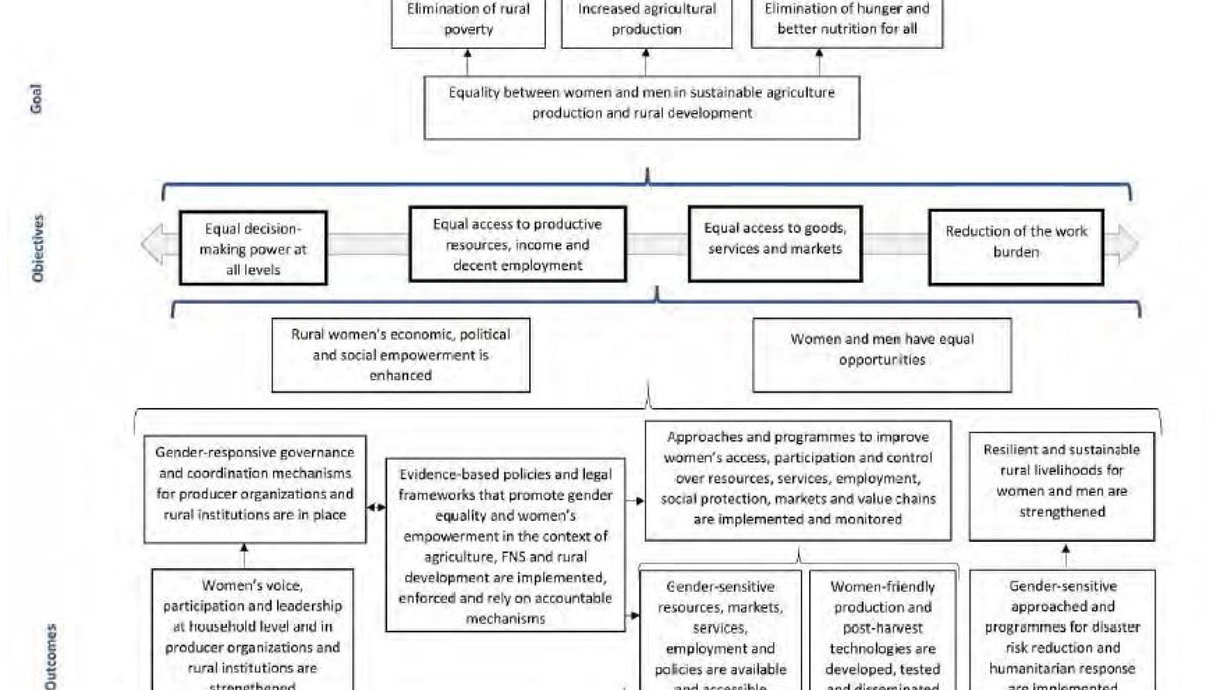 In FAO, we have also seen an increase in their application at programme and project levels. ToCs are routinely used to illustrate the impact pathways of strategic programmes (e.g. http://www.fao.org/3/a-mr830e.pdf on page 41) and/or to comprehensively explain the logic of project-funded interventions (e.g. MAFAP http://www.fao.org/3/a-at151e.pdf). The Office of Evaluation has also started to use ToCs in their assessments (e.g. Evaluation of FAO’s work on gender: http://www.fao.org/3/ca3756en/ca3756en.pdf on page 9).