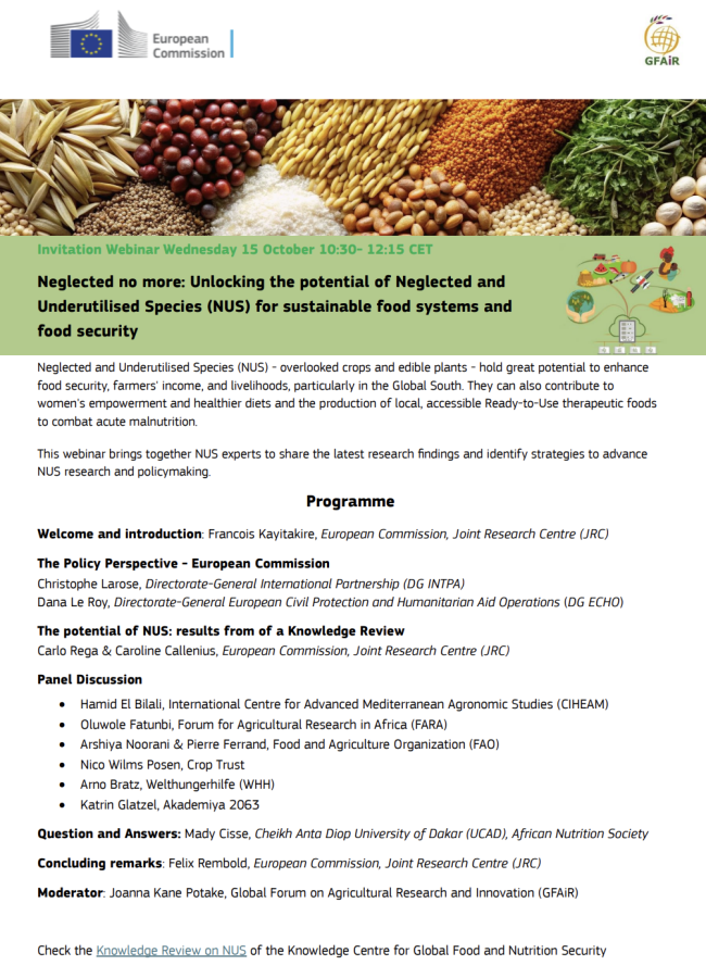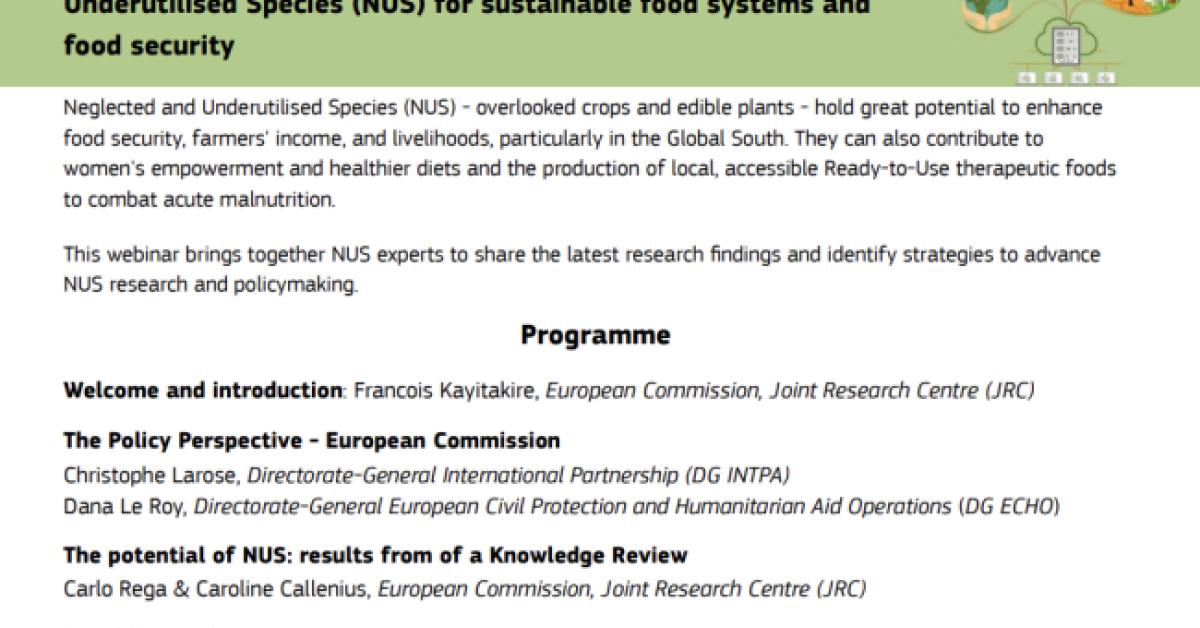 Neglected and Underutilised Species (NUS) - overlooked crops and edible plants - hold great potential to enhance food security, farmers' income, and livelihoods, particularly in the Global South. They can also contribute to women's empowerment and healthier diets and the production of local, accessible Ready-to-Use therapeutic foods to combat acute malnutrition.