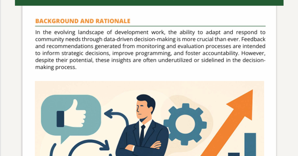Although development organizations recognize the importance of stakeholder feedback, many fail to meaningfully incorporate it into decision-making. Organizational culture, resource limitations, lack of leadership engagement, and resistance to change all contribute to this issue. Without systematic mechanisms to collect, analyze, and apply feedback, opportunities for learning and improvement are lost, which leads to reduced impact, disengaged stakeholders, and diminished accountability.