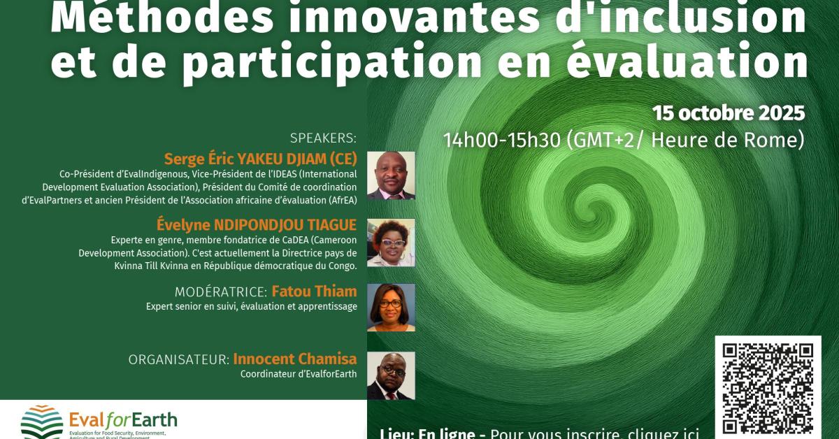 Ce webinaire propose de faire un état des lieux des pratiques innovantes d’inclusion dans l’évaluation, de discuter de leur impact sur l’utilisation des résultats, et de formuler des pistes concrètes pour les intégrer durablement dans les pratiques courantes d’évaluation.